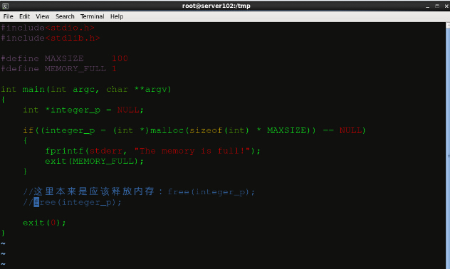 為了體現(xiàn)valgrind 的檢錯功能,我們故意編寫一個只malloc沒有free的C程序:
