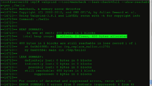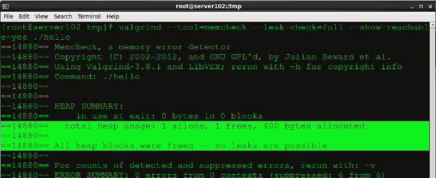 linux下檢測內(nèi)存泄漏工具Valgrind簡介 在我們編寫C/C++的時候,最常見的錯誤之一就是內(nèi)存泄露,這樣的問題其實跟程序員的編程習(xí)慣密不可分。如果你在虛擬主機申請內(nèi)存空間之后能夠馬上在合適的位置釋放內(nèi)存。會極大程度的避免內(nèi)存泄漏的情況。但是人非圣賢,孰能無過。有時候我們確實忘記釋放內(nèi)存而導(dǎo)致了比較嚴重的錯誤,所以這個時候我們需要借助valgrind這個工具來判斷內(nèi)存泄漏。 Valgrind 是一款 Linux下(支持 x86、x86_64和ppc32)程序的內(nèi)存調(diào)試工具,它可以對編譯后的二進制程序進行內(nèi)存使用監(jiān)測(C語言中的malloc和free,以及C++中的new和delete),找出內(nèi)存泄漏問題。 Valgrind 中包含的 Memcheck 工具可以檢查以下的程序錯誤: 使用未初始化的內(nèi)存 (Use of uninitialised memory) 使用已經(jīng)釋放了的內(nèi)存 (Reading/writing memory after it has been free’d) 使用超過malloc分配的內(nèi)存空間(Reading/writing off the end of malloc’d blocks) 對堆棧的非法訪問 (Reading/writing inappropriate areas on the stack) 申請的空間是否有釋放 (Memory leaks – where pointers to malloc’d blocks are lost forever) malloc/free/new/delete申請和釋放內(nèi)存的匹配(Mismatched use of malloc/new/new [] vs free/delete/delete []) src和dst的重疊(Overlapping src and dst pointers in memcpy() and related functions) 重復(fù)free valgrind的使用實例: 在官網(wǎng)上找到valgrind的tar包,解壓,編譯。完成后make安裝: