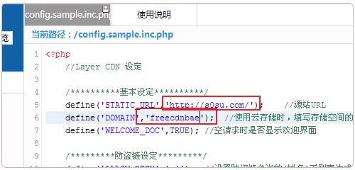 2、Layer的設(shè)置都在config.sample.inc.php文件中,打開該文件,可以看到Layer的基本設(shè)定。說明如下: /**********基本設(shè)定**********/define('STATIC_URL','http://www.****.com/'); //源站URL define('DOMAIN','freecdnbae'); //使用云存儲(chǔ)時(shí),填寫存儲(chǔ)空間的名字;使用本地存儲(chǔ)時(shí),填寫存儲(chǔ)的相對(duì)路徑。 define('WELCOME_DOC',TRUE); //空請(qǐng)求時(shí)是否顯示歡迎界面