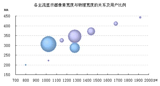 網頁設計師往往需要考慮不同客戶端的瀏覽體驗。文字大小,是用戶體驗中的一個重要部分。不同的分辨率,不同的顯示器尺寸,不同的DPI,乃至不同的瀏覽器設置,都會對最終展現的文字大小帶來影響。雖然現在很多瀏覽器已經可以方便地縮放頁面,但用戶每次光臨都要重新縮放,總歸麻煩,何況還有許多用戶不知道如何縮放頁面。最好還是根據用戶的分辨率給用戶一個比較體貼的默認字號,那這個字號多大合適呢? 12px?14px?15px?16px? 還是壓根就不應該使用px這個單位呢? 問題的根源,在于屏幕上的一切字號單位(px,pt,em)都是相對單位,單憑它們并不能確定文字的實際大小。何況人對文字大小的根本感知在于眼睛的視角,這不僅取決于文字的物理尺寸,還取決于它到人眼的距離。 首先假定一個我們希望達到的文字物理尺寸,例如設定為17寸1280 * 1024顯示器上的16px,計算可得它的高度約是4.32mm,我們計劃讓網頁文字在大部分顯示器上都比較接近這個大小,那么在不同分辨率下應該顯示成多大的字號呢? 統計用戶主要的分辨率和對應的屏幕大小 要在物理尺寸和分辨率之間換算,首先要統計分辨率和對應的屏幕尺寸。用戶分辨率的分布情況可以從網站的統計日志里獲得。由于每個分辨率設置可能對應好幾個不同尺寸的屏幕,而屏幕尺寸又無法通過網頁獲得,只好對現在的顯示器市場進行統計分析:針對某一分辨率,統計可能的屏幕尺寸范圍,從最小到最大,相對主流的是多大(或使用該范圍的中間值作為主流尺寸)。如下圖所示: ![]() 電腦顯示器市場(產品種類繁多,難免掛一漏萬,數據僅供參考) 計算每個分辨率主流屏幕尺寸的物理寬度 現在的顯示器長寬比不僅有4:3的標準屏,16:10的寬屏,還有更多不規則比例,為了在不同長寬比的顯示器之間進行比較,統一使用橫向分辨率來統計。用主流尺寸和長寬比(假設像素的長和寬相同)計算出屏幕寬度(英寸),再換算成公制(毫米),將其一一對應就可看出屏幕大小的趨勢。再結合各分辨率的用戶分布,結果如下圖所示(圖片中每個點對應一個分辨率,橫軸為屏幕橫向的像素數,縱軸為該屏幕的物理寬度,氣泡大小表示使用該分辨率的用戶人數。其中藍色氣泡表示標準屏,紫色表示寬屏):最大的三個氣泡分別是1024*768,1280*1024,1280*800。 ![]()