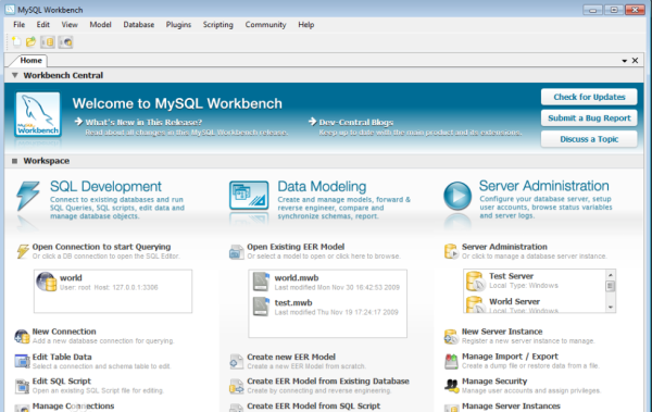 MySQL Workbench是一個統一的可視化開發和管理平臺,該平臺提供了許多高級工具,可支持數據庫建模和設計、查詢開發和測試、服務器配置和監視、用戶和安全管理、備份和恢復自動化、審計數據檢查以及向導驅動的數據庫遷移。MySQL Workbench是MySQL AB發布的可視化的數據庫設計軟件,它的前身是 FabForce 公司的 DDesigner 4。
