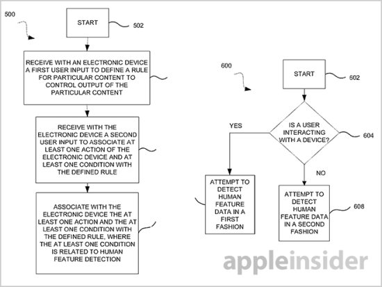 日前,美國專利和商標局剛剛通過了蘋果一項新專利申請,該項目被稱為“基于人類識別數據檢測控制內容輸入的系統和方法”。這項專利可以利用電子設備的內置傳感器檢測到用戶存在,并且根據檢測的數據來自動判斷某些媒體的播放。例如在孩子進屋之后,系統將自動停止成人電影的播放。