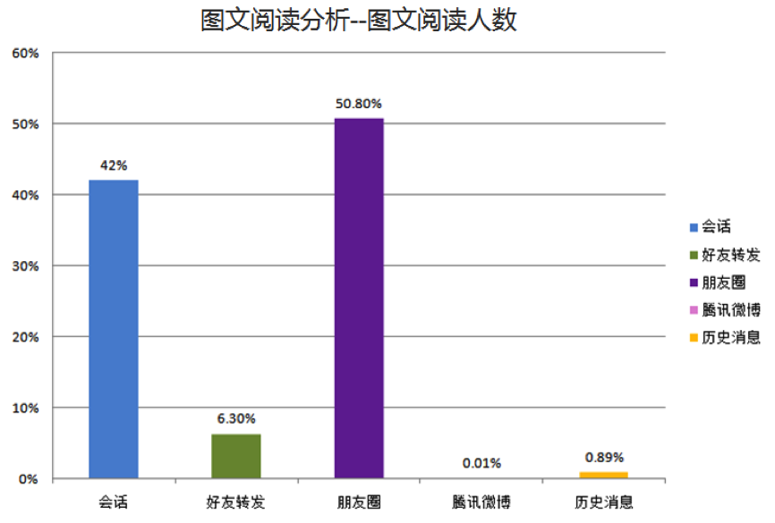 每個指標的數(shù)據(jù)都來源5個渠道:會話、好友轉(zhuǎn)發(fā)、朋友圈、騰訊微博、歷史消息。