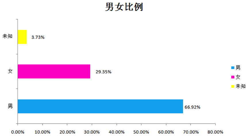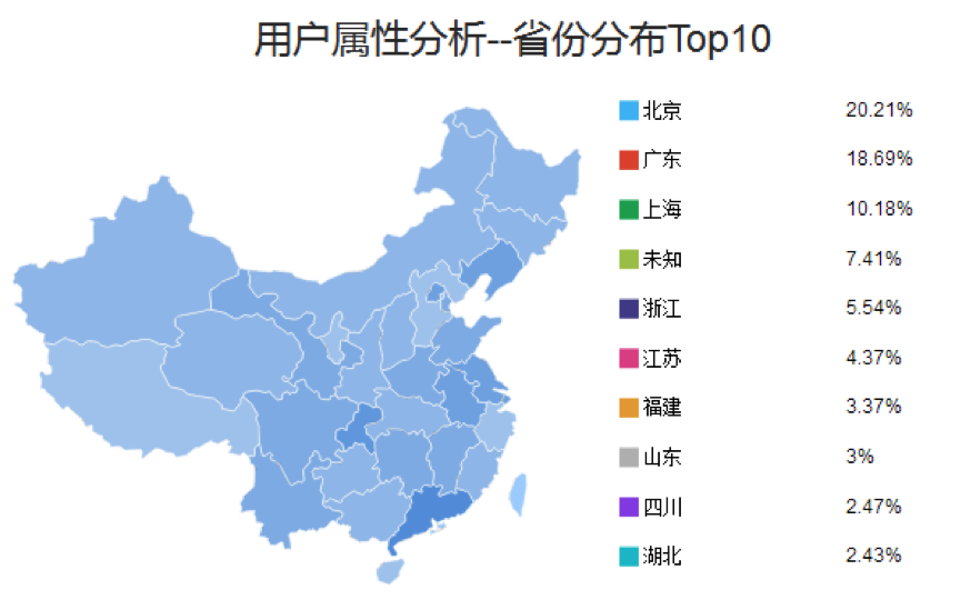 由于各個公眾號的定位以及用戶群體不同,用戶屬性會有所差異;下面列出本號的用戶熟悉以供參考(由于城市數(shù)量較多,就不列出)。
