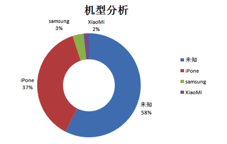 已知的機型里,iPhone最多,三星和小米其次,其他的應(yīng)該絕大部分是Android手機,無奈國產(chǎn)機紛繁復(fù)雜,統(tǒng)計起來也非常麻煩。如果是針對某一機型,或某一操作系統(tǒng)做的公眾號,機型或終端分布才會出現(xiàn)巨大偏差。