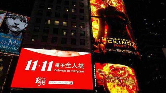這是紐約時代廣場1號店打出的雙十一廣告,從這張圖里可以看出3點:1、別小瞧1號店,人家雖沒阿里有錢,但誰家還沒兩騷錢啊!2、有把雙11推廣到美國的意思;3、如果考慮之前阿里在中國封殺雙十一商標,那么人家1號店跑到美國來宣傳你總管不著吧?