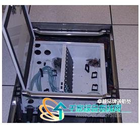 地板下,在活動(dòng)地板下方安置地板盒,主干光纜通過(guò)地板盒內(nèi)的配線面板,從配線面板插接跳線由地板下方設(shè)備底部進(jìn)入設(shè)備內(nèi)部并端接于設(shè)備的端口上,這種布線適用于下走線的布線方式,這種方式主要的優(yōu)點(diǎn)擴(kuò)容與維護(hù)較便利,也基本不受限于設(shè)備的型號(hào)與差異。缺點(diǎn)是相對(duì)地板安裝方式成本稍高,對(duì)下送風(fēng)氣流有一定的阻礙。如圖5 所示: