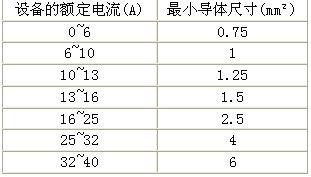 除了電纜的截面積,保護導體的截面積也必須符合要求,表3列了單芯電源軟線導體截面積與載流量對應的關系,要盡量和電源線的線徑保持一致。整個導體的電阻要小于0.1歐姆。在接地導體上,不能有任何的保護裝置,如開關、保險絲、斷路器等。