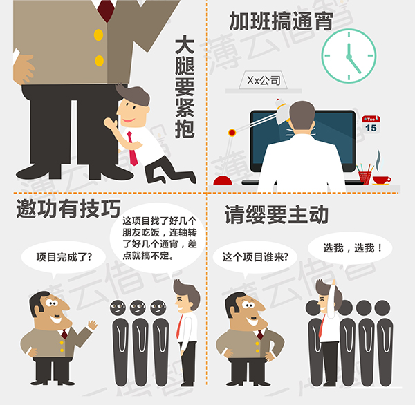 最后我們總結了高額年終獎的二十字箴言:大腿要緊抱,加班搞通宵。請纓要主動,邀功有技巧。