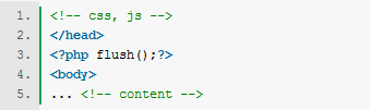 用戶端發送瀏覽請求后,服務器端一般要花銷200-500ms去處理這些請求,在此期間,用戶端瀏覽器處于等待狀態,如果要減少用戶等待時間,可以在適當的位置使用flush,將已經就緒的內容推送到用戶端,這在php中很容易實現例如: