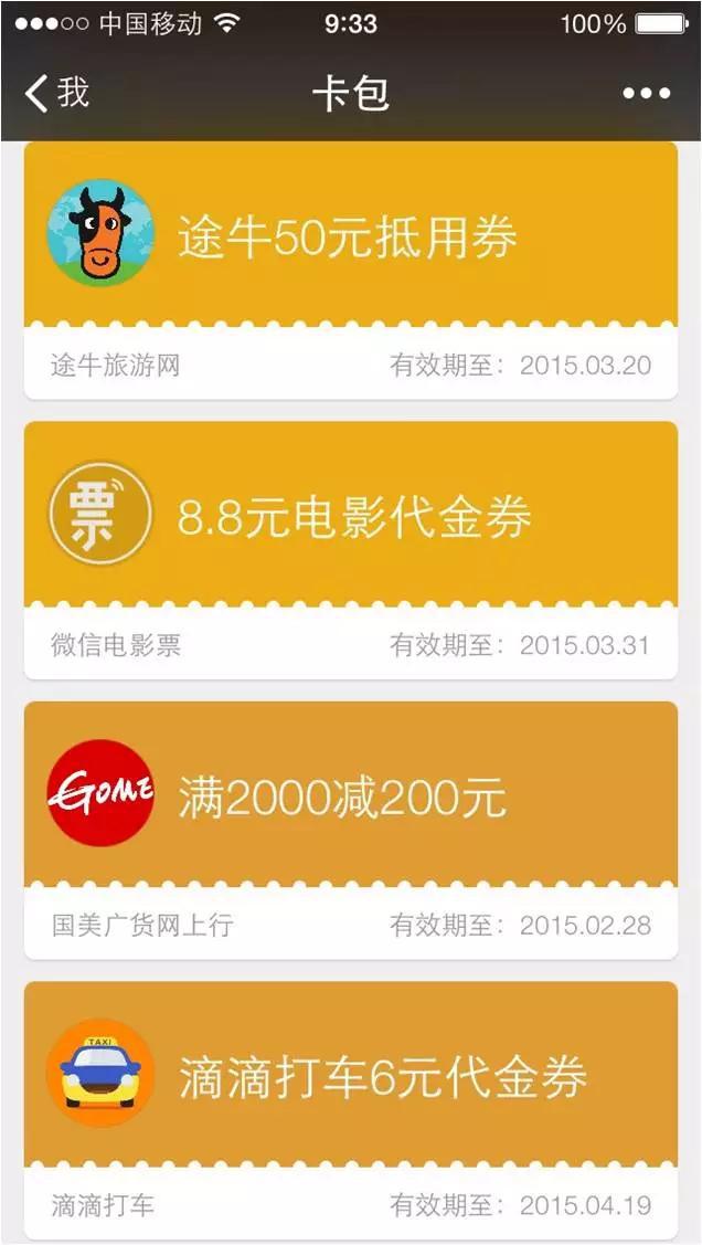 對于商家來說,這也無疑是一場別開生面的營銷活動,看似發禮券是常規手法,用了多少年了,難免俗套,但是這就是微信與其他平臺不同的地方,同樣玩紅包,微信中強社交的元素讓一切老玩法立馬有了活力,禮券也是如此,當我們把營銷活動更加的社交化、游戲化時,營銷的威力才可以放大,甚至有時超出你的想象。就如同國美在線這樣的電商企業,依托國美電器強大的線下店面,加上春節物流不休的安排,在這個電商淡季,透過禮券等創新O2O互動玩法,在線上線下多場景聯動派發紅包禮券,讓銷量大大增加,任何商業形態切實能夠帶來消費轉化才是硬道理!