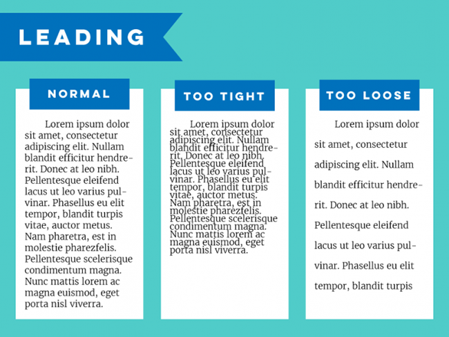 行間距也是影響可讀性的重要因素,過于緊湊會難于識別,但是一味地拉開間距在視覺上的效果并不合理。一般行間距是行高的50%左右。