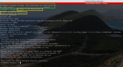 #apt-getinstallisc-dhcp-server[安裝theISCDHCPServer軟件]#dpkg--get-selectionsisc-dhcp-server[確認軟件已經成功安裝]#dpkg-sisc-dhcp-server[用另一種方式確認成功安裝]