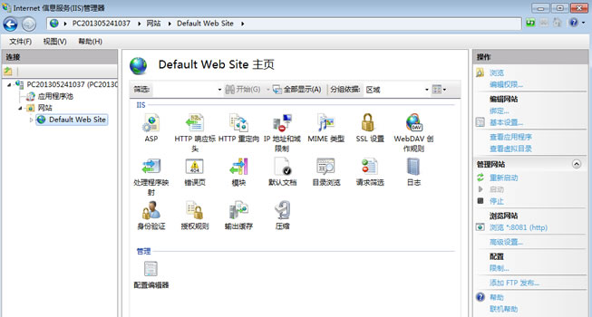 首先,需要到管理工具中的"Internet 信息服務(IIS)管理器",上圖中的右側"高級設置"設置路徑。