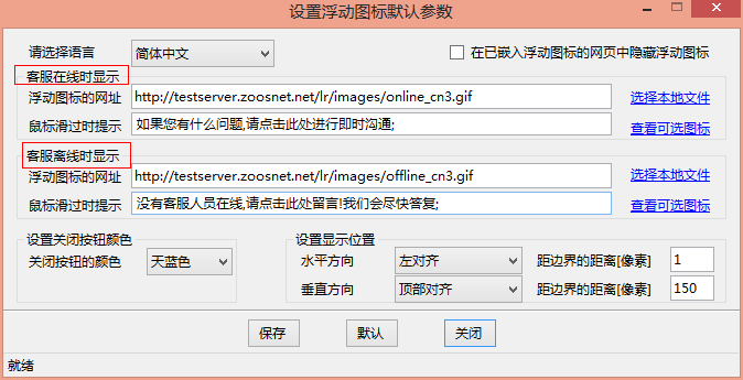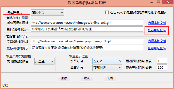 3.注意浮動圖標分兩種情況顯示,分在線和離線兩種