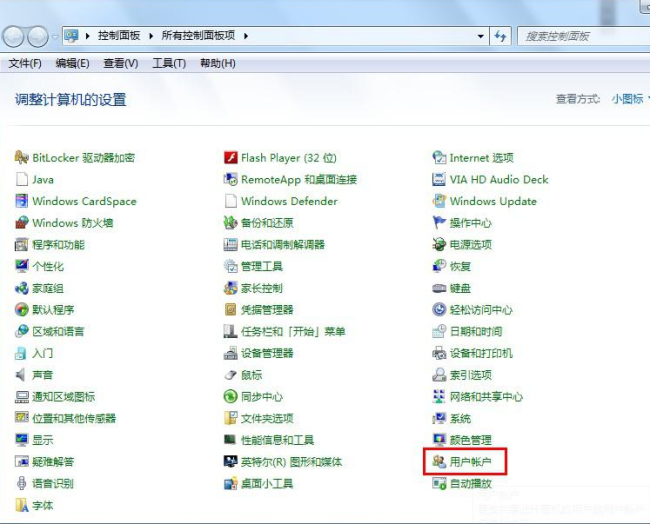 3、因為windows 7 遠程桌面連接需要設置計算機密碼,下面我們為計算機設置密碼。點擊控制面板,選擇用戶帳號打開。進入下一步,如下圖: