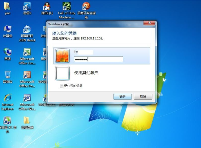 9、在新彈出的窗口中輸入已經設定好的賬戶和密碼,點擊“確定”即可。如下圖: