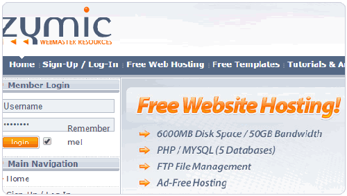 Zymic免費空間,空間6G,每月50G流量限制,FTP、Web方式上傳管理文件,支持PHP5,限制較多,有3個MySQL數據庫,提供免費二級域名1個,可綁定無限個自己的域名,無廣告。
