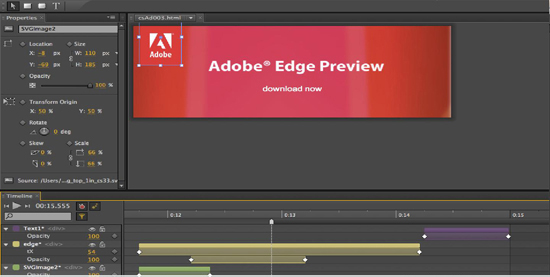 動(dòng)畫可以在獨(dú)立的時(shí)間線上進(jìn)行嵌套,還能實(shí)現(xiàn)互動(dòng)功能。符合可以服用并通過API和代碼片段控制。通過Edge設(shè)計(jì)的內(nèi)容可以兼容iOS和Android設(shè)備,也可以運(yùn)行在火狐、Chrome、Safari和IE9等主流瀏覽器。
