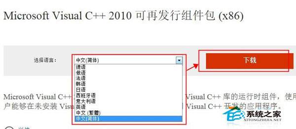 4、在頁(yè)面中選擇安裝語(yǔ)言,然后點(diǎn)擊“下載”;