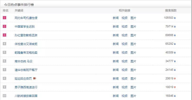 上圖是今日熱點事件排行榜榜單的前十位,其中的任何一條都能應用到特定企業的關鍵詞推廣中。就以“中國留學生遲到”為例,這幾乎就是為一些出國留學機構量身打造的,這些機構可以將關鍵詞設置為“熱門留學國家”“留學生活”“出國留學必備”等,這樣關鍵詞的推廣效果一定會很明顯。