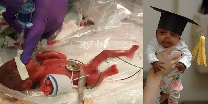 世界最小存活嬰兒出生時體重不到半斤,你敢信?最近這個小家伙出院了。