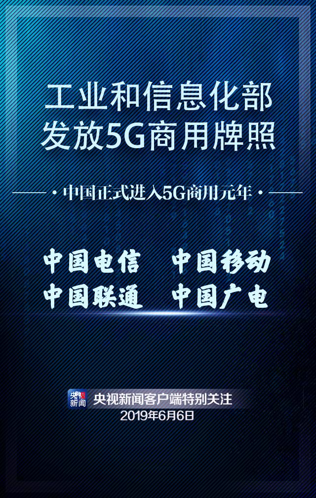 工信部今日發(fā)放5G商用牌照,中國(guó)廣電成為繼中國(guó)移動(dòng)、中國(guó)電信和中國(guó)聯(lián)通之后第四大基礎(chǔ)電信運(yùn)營(yíng)商。