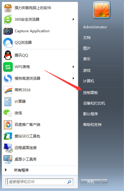 3、創建用戶完成后我們就可以開始添加IIS程序服務。打開電腦的開始菜單找到控制面板選項,并打開進入。