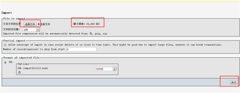 第三步,點(diǎn)擊選擇文件,選擇要導(dǎo)入的mdf文件即可,這里要導(dǎo)入的是cs.mdf文件,然后,點(diǎn)擊“執(zhí)行”按鈕,mdf文件就導(dǎo)入進(jìn)MySQL了。