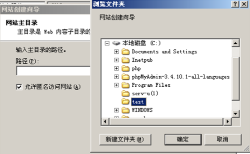 5、選擇網(wǎng)站存放路徑,并勾選允許匿名訪問網(wǎng)站