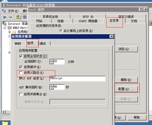4)應(yīng)用程序配置:點擊“配置”選項,進入應(yīng)用程序配置選擇“選項”菜單,選擇“啟用父路徑”,點擊確定,完成: